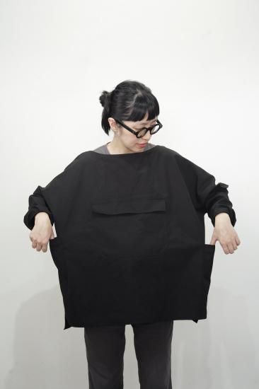 身幅をボックス型にゆとりを持たせ体がすっぽり覆われるデザイン。